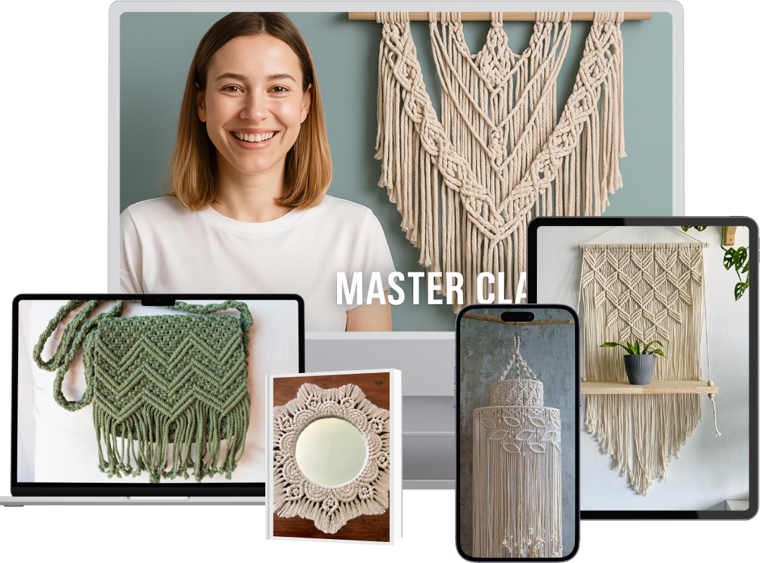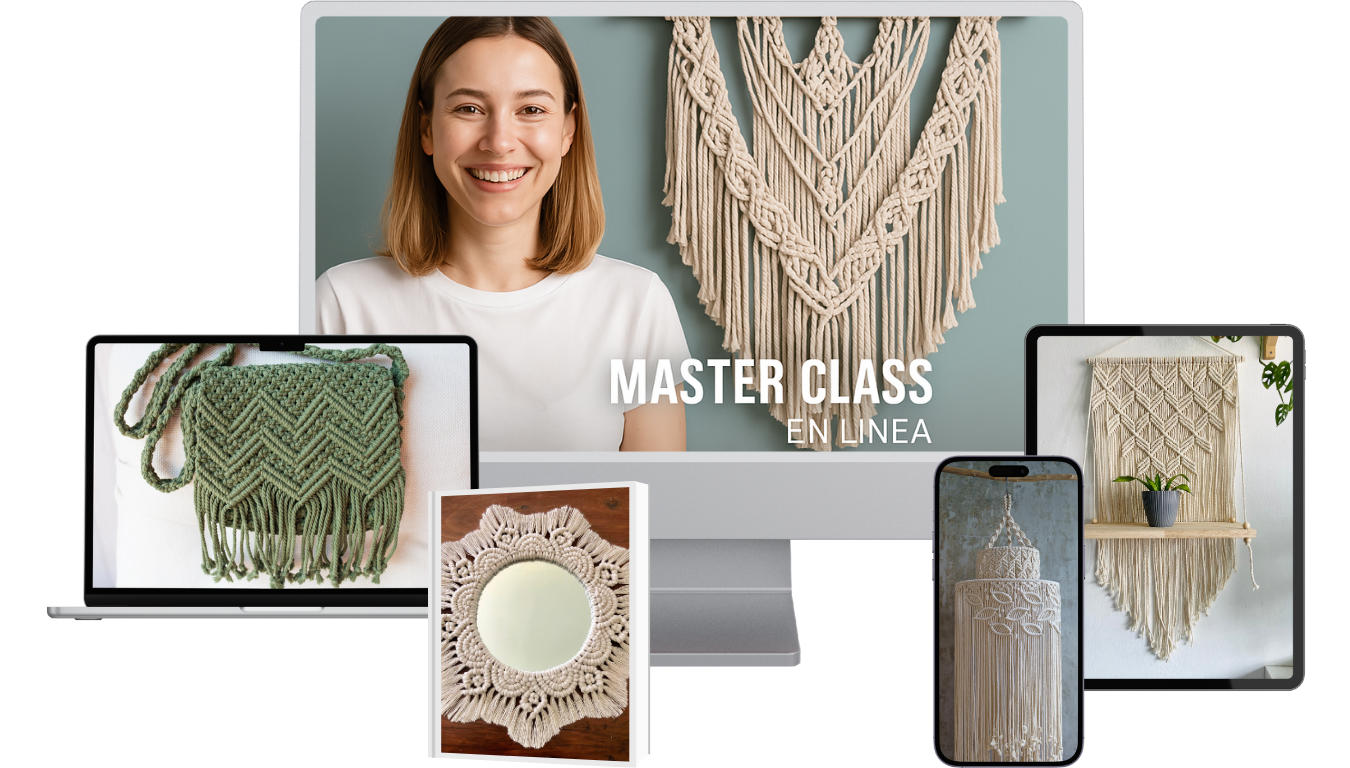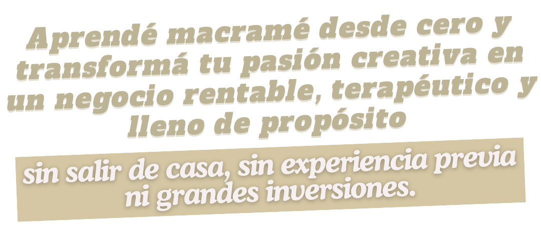 «Aprende, relájate, crea arte y lanza tu propio negocio de macramé desde cero, con una guía paso a paso que te acompaña en cada nudo, cada diseño y cada venta.»